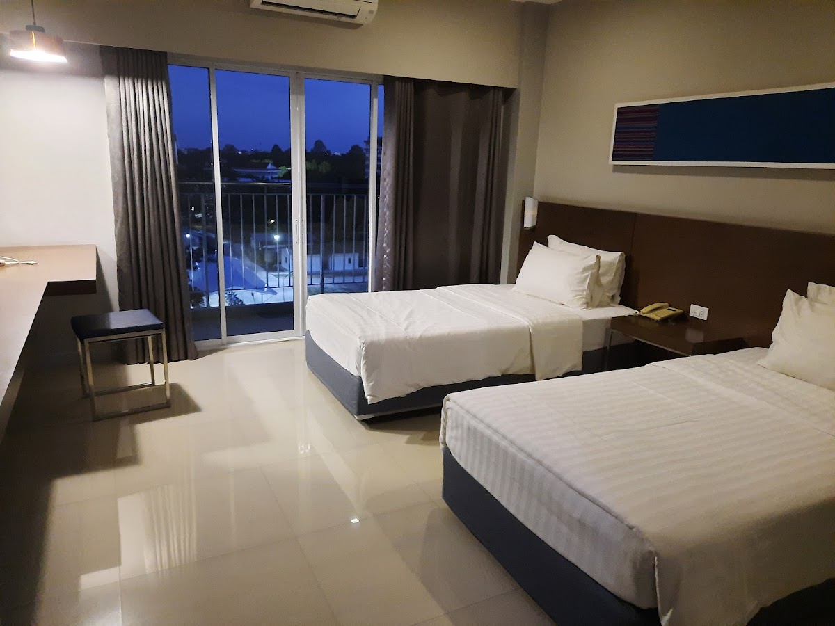 It cost 1500b for family room. The hotel is spacious, comes with breakfast and big car park. Furnishing looks and modern though it’s slightly off city center. If you like to stay near lively places, there’s nothing much in the surrounding except a local park nearby w a lakes and a lot of locals exercising there. Also not that many food choices. Need to drive or walk further