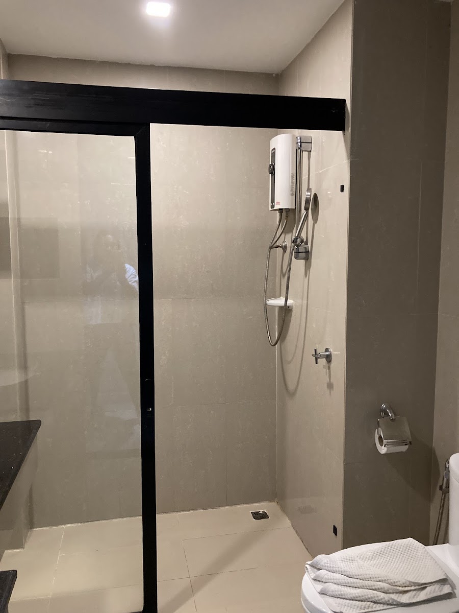 The hotel’s design is modern and functional, reflecting a clean, European-style aesthetic. Guests consistently praise the well-maintained rooms, highlighting comfortable beds, quiet Mitsubishi air conditioning, and thoughtfully designed bathrooms featuring movable glass shower doors—an unusual but welcome detail in Thailand that prevents water spillage and keeps the space tidy.